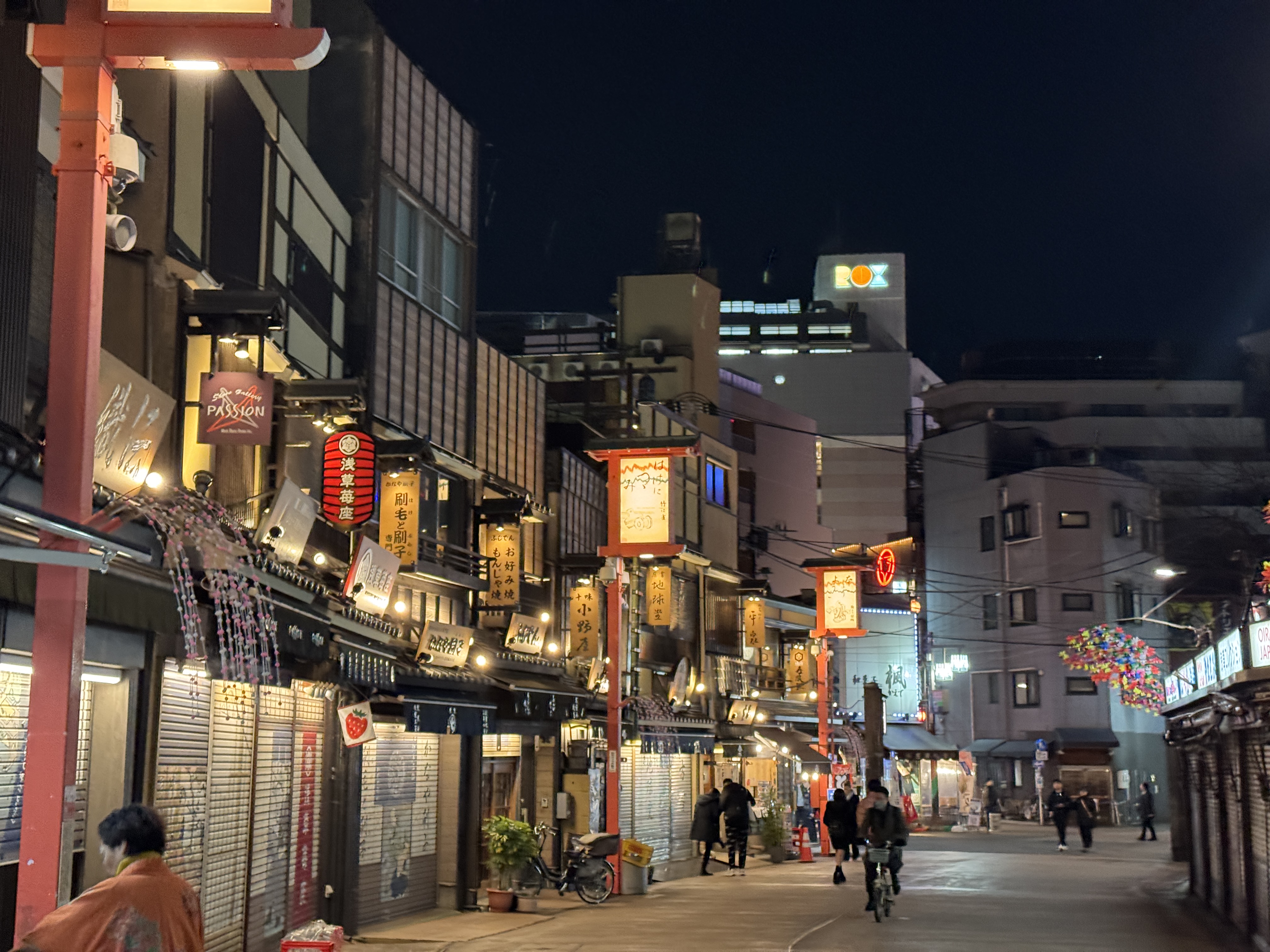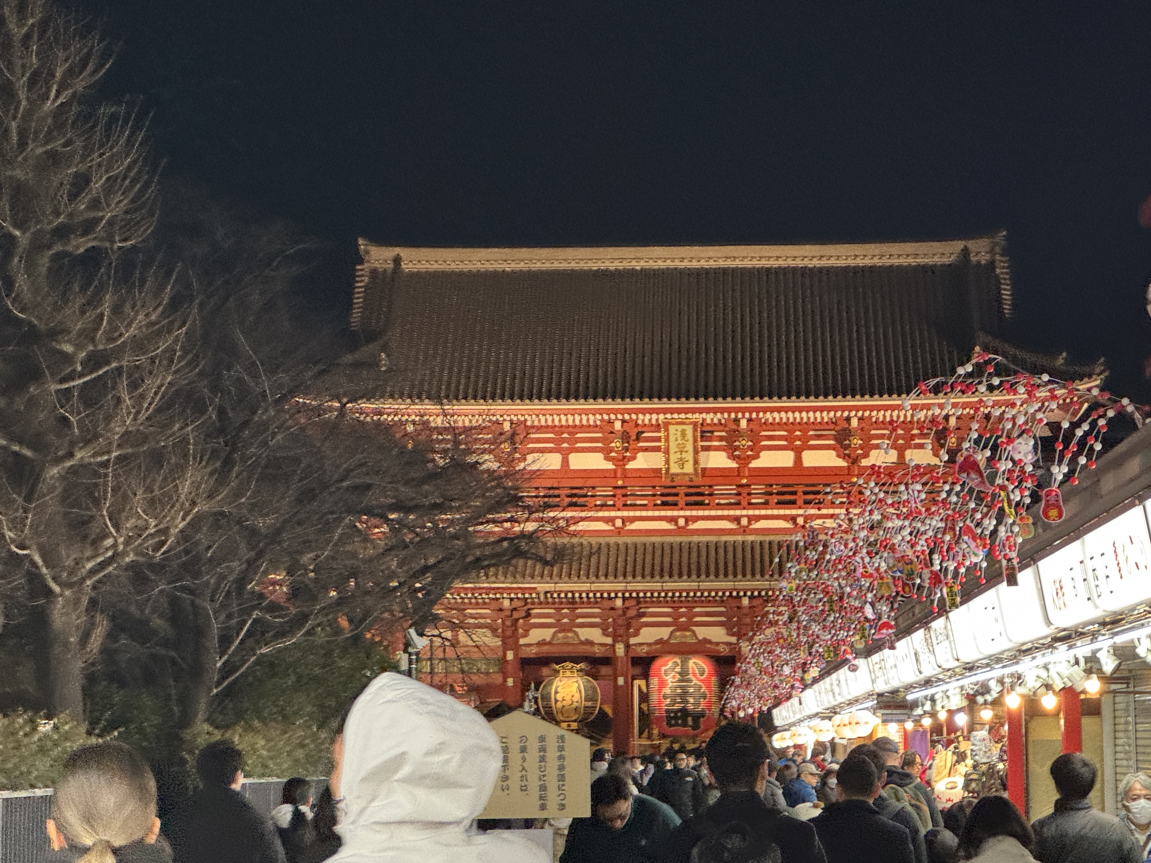 센소지를 향하는 길목인 나카미세도리(仲見世通り)는 항상 사람들로 붐비지만, 그 풍경이 유독 따뜻하게 느껴집니다. 가게마다 장식을 걸어두고, 상점 앞에서는 닌교야키(인형 모양의 팥빵)와 찹쌀떡을 굽는 냄새가 바람에 섞여 퍼집니다.