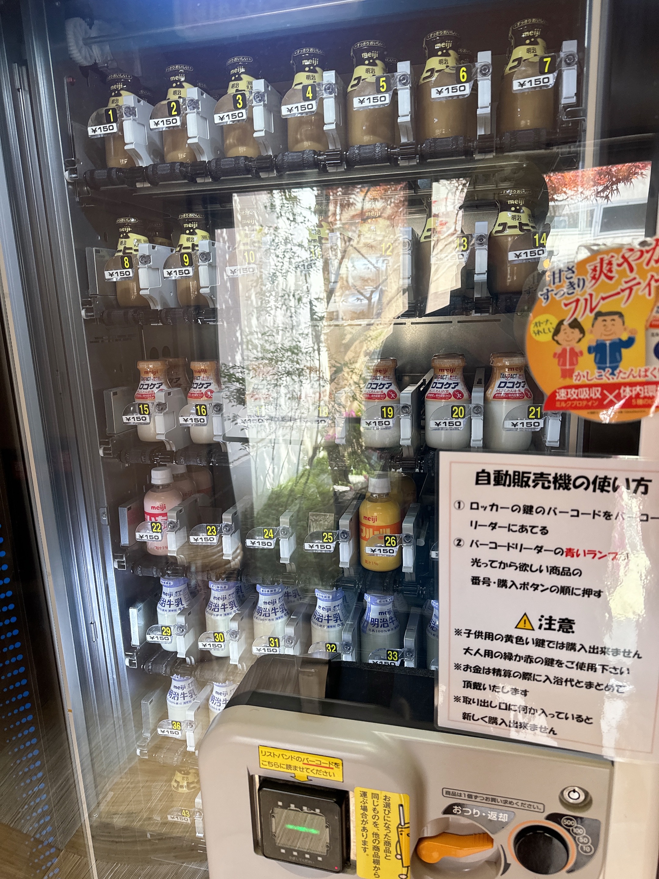 온천의 상징, 병우유 자판기