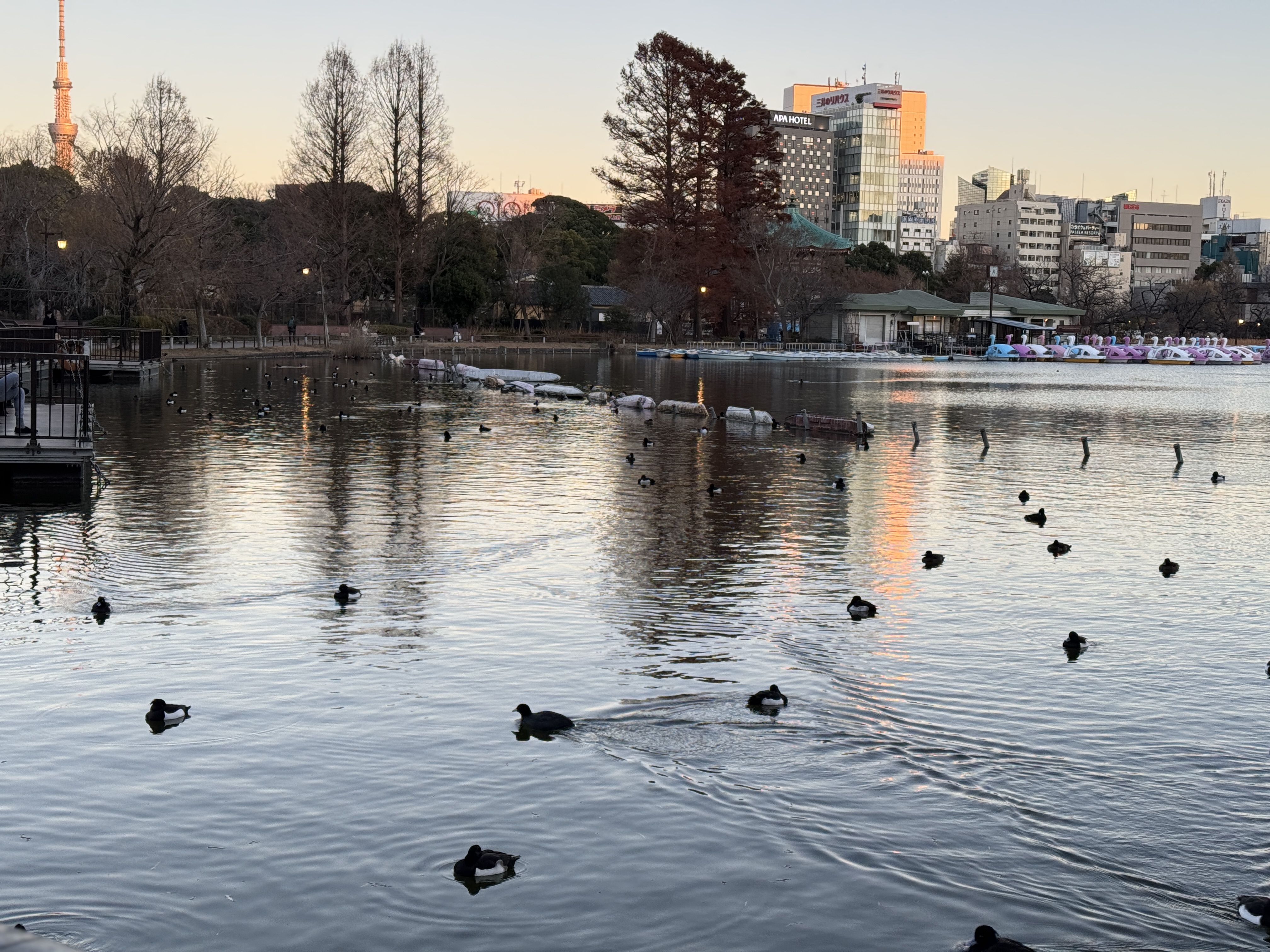 우에노공원에서 가장 기억에 남는 공간은 시노바즈 연못(시노바즈노이케)입니다. 연못 앞에 서자 바람이 물을 스치는 소리가 귀에 또렷이 들려왔고, 도심 속 호수라고는 믿기지 않을 만큼 조용한 분위기가 펼쳐졌습니다.